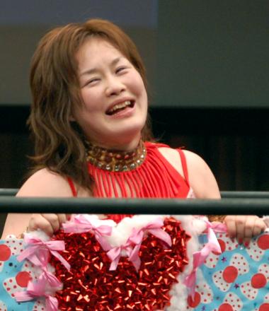 IWA JAPAN、FMWを経て2004年10月、我闘姑娘を旗揚げ。バラエティに富んだ陣容 を揃え、女子プロレス界において屈指の個性派団体に育てる。 2006年6月より、”リングのないプロレス”アイスリボンを主宰。同年11月には我闘姑 娘を退団し、アイスリボンの代表に就任。男女を問わない柔軟で絶妙なマッチメーク もあって、支持層は女子ファンからインディーファンにまで広がっていった。 2007年1月、突然のプロポーズ受け入れから始まったNEO甲田社長との結婚狂騒曲 は、ファンはもとより関係者をも巻き込む、疑心暗鬼の一大騒動に発展。最終的には 破局しプロレスとの結婚を宣言するも、現在は矢野啓太に猛アタック中だ。 2007年4月にはリングのあるプロレス、Future Starを立ち上げ。 同年5月、田村欣子とのタイトルマッチは白眉の名勝負となり、週プロにて年間女子 ベストバウトに選出される。7月には田村と組んで、両者とも初となるタッグタイトルを 獲得する。初防衛失敗もあって欣子には捨てられたものの、解散コンサートを開催。 団体の長として選手として歌手として、その存在感は増していくばかりだ。 |